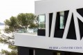 La plupart des cloisons sont faites de verre pour profiter au maximum de cette incroyable vue. Elle se compose d’un socle entièrement vitré, porté par de massives colonnes de béton noir, sur lequel repose un polyèdre aérien en porte-à-faux qui accueille les chambres. La partie arrière de la maison est recouverte d’un lattis de bois. De toutes parts, on peut admirer l’horizon plongeant dans la Méditerranée comme un rêve d’azur.